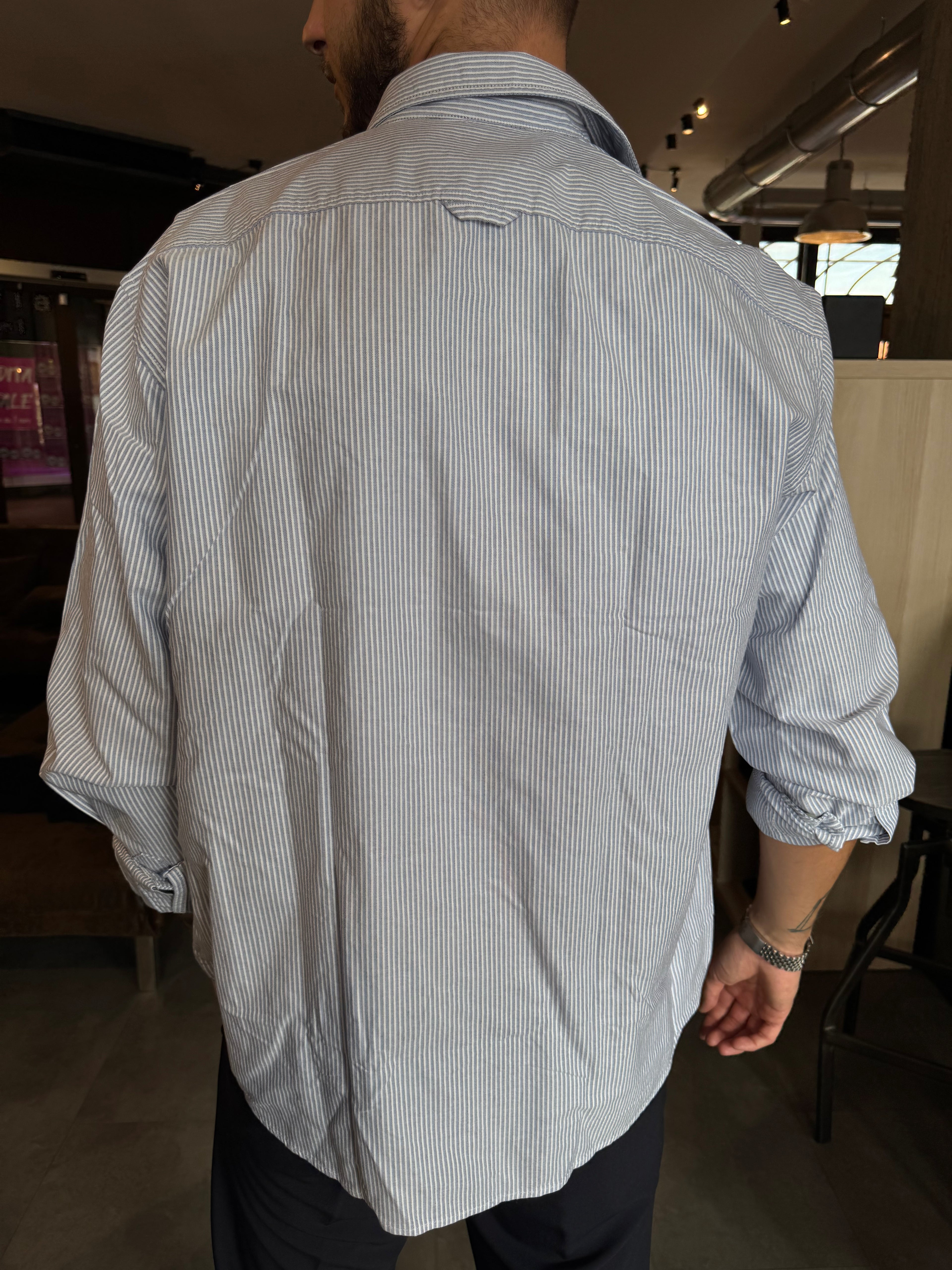 camicia classica selected in cotone con taschino , colletto, righe azzurre e bianche