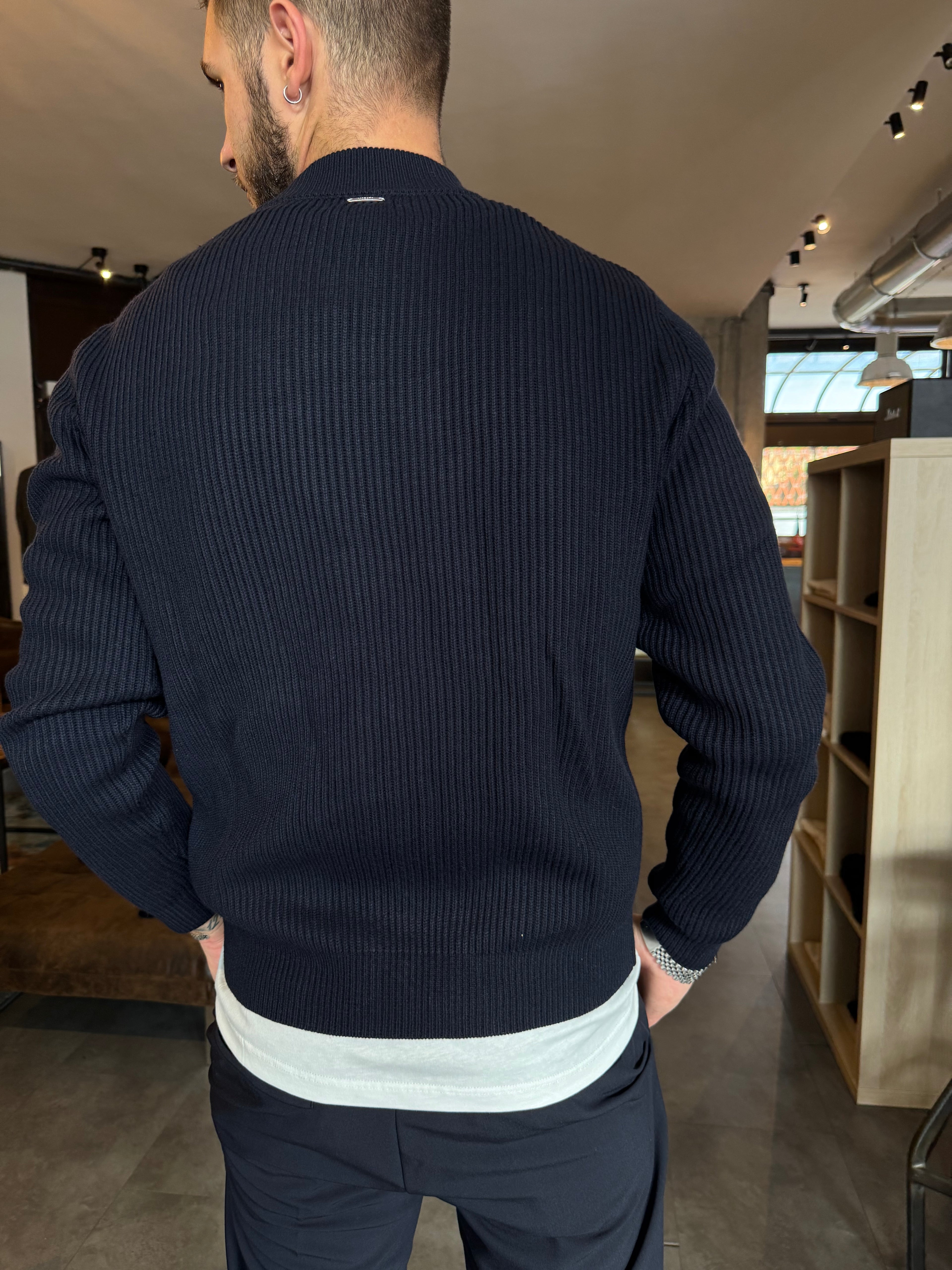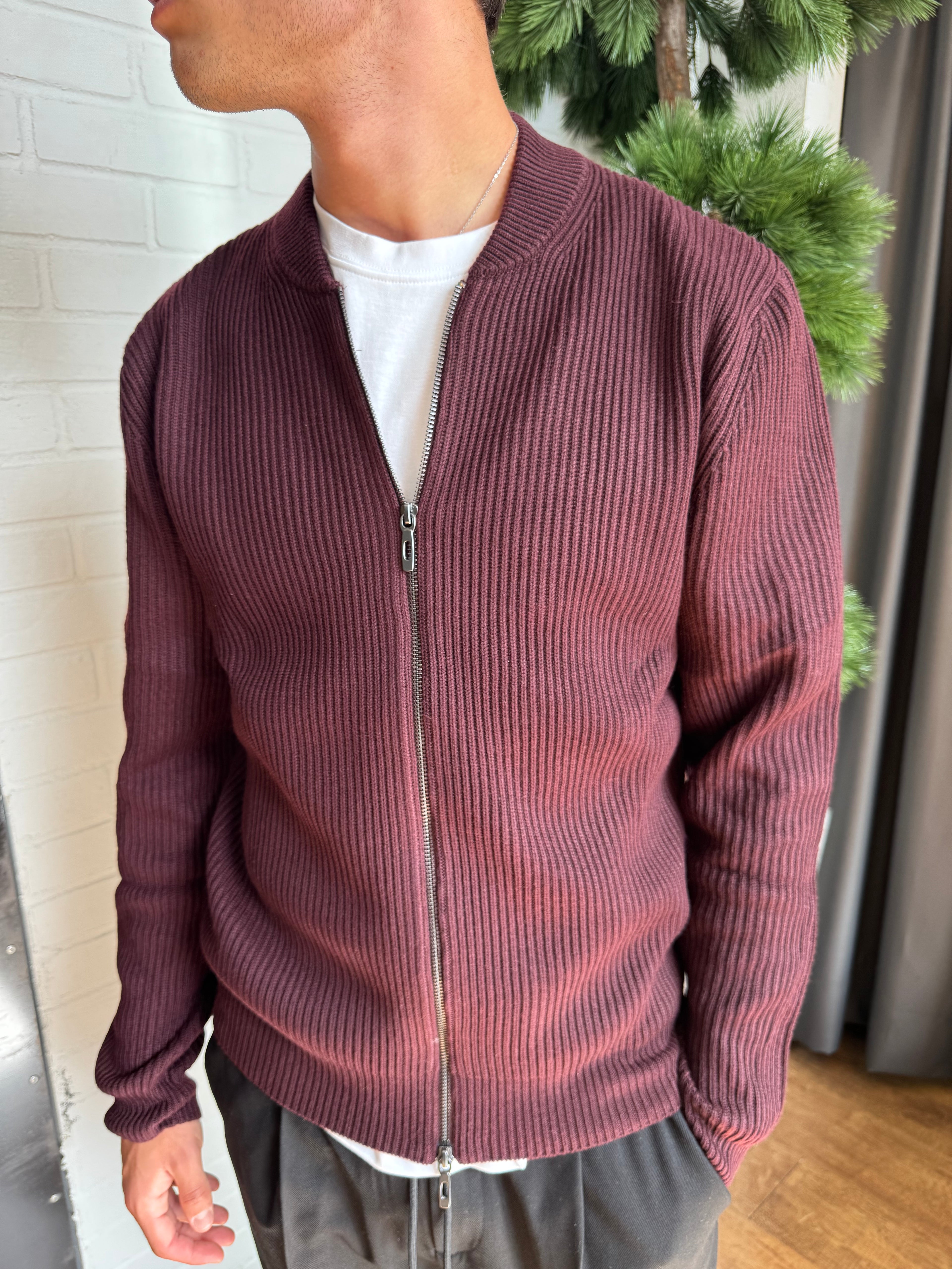 maglione morato con zip, vestibilità classica, regular fit, dettaglio a costine