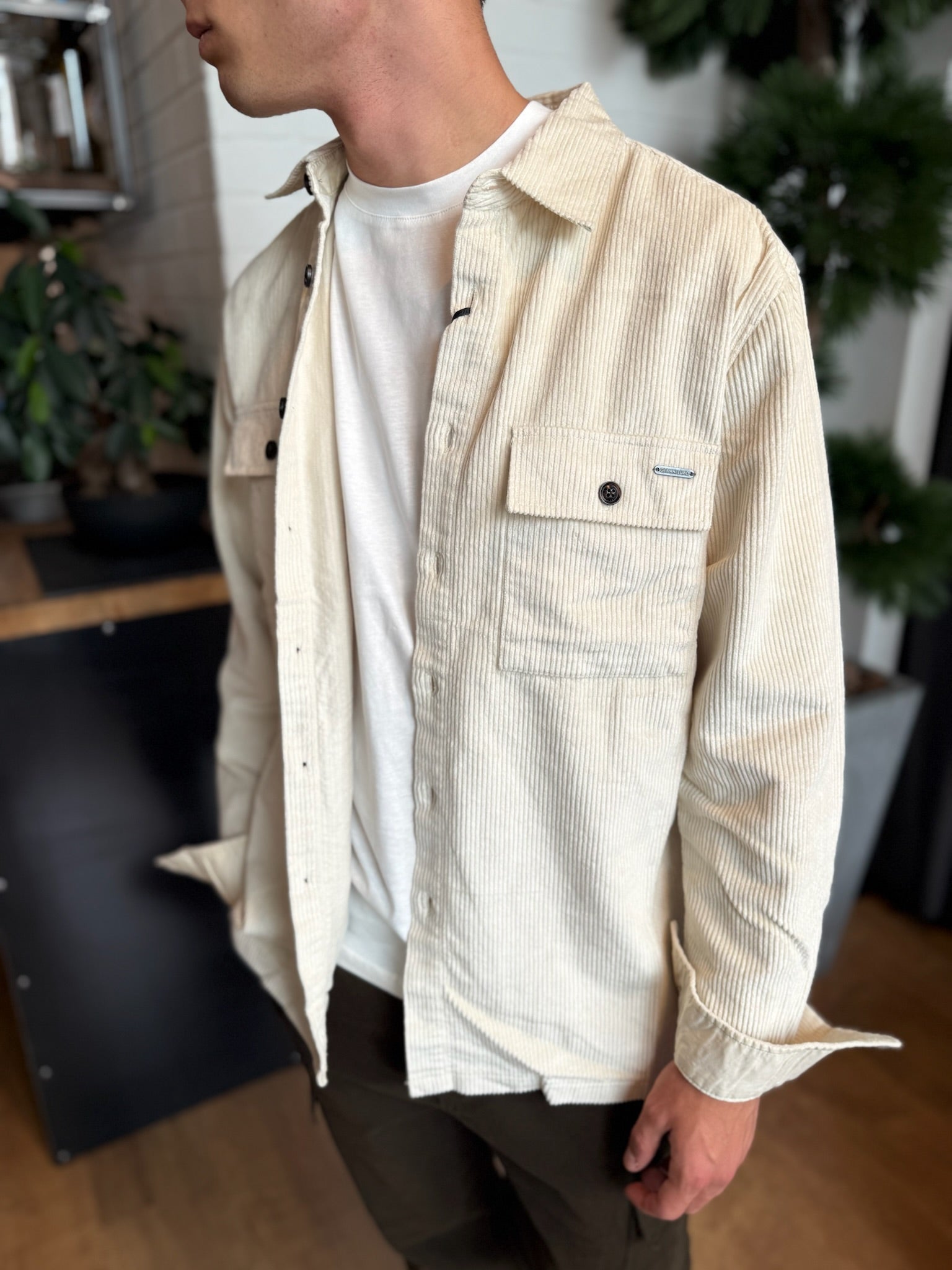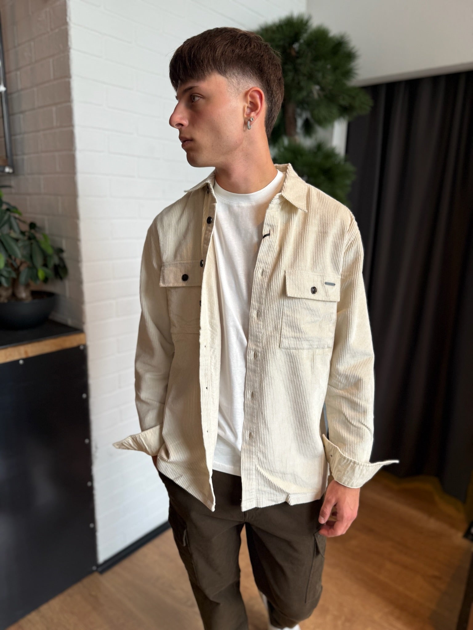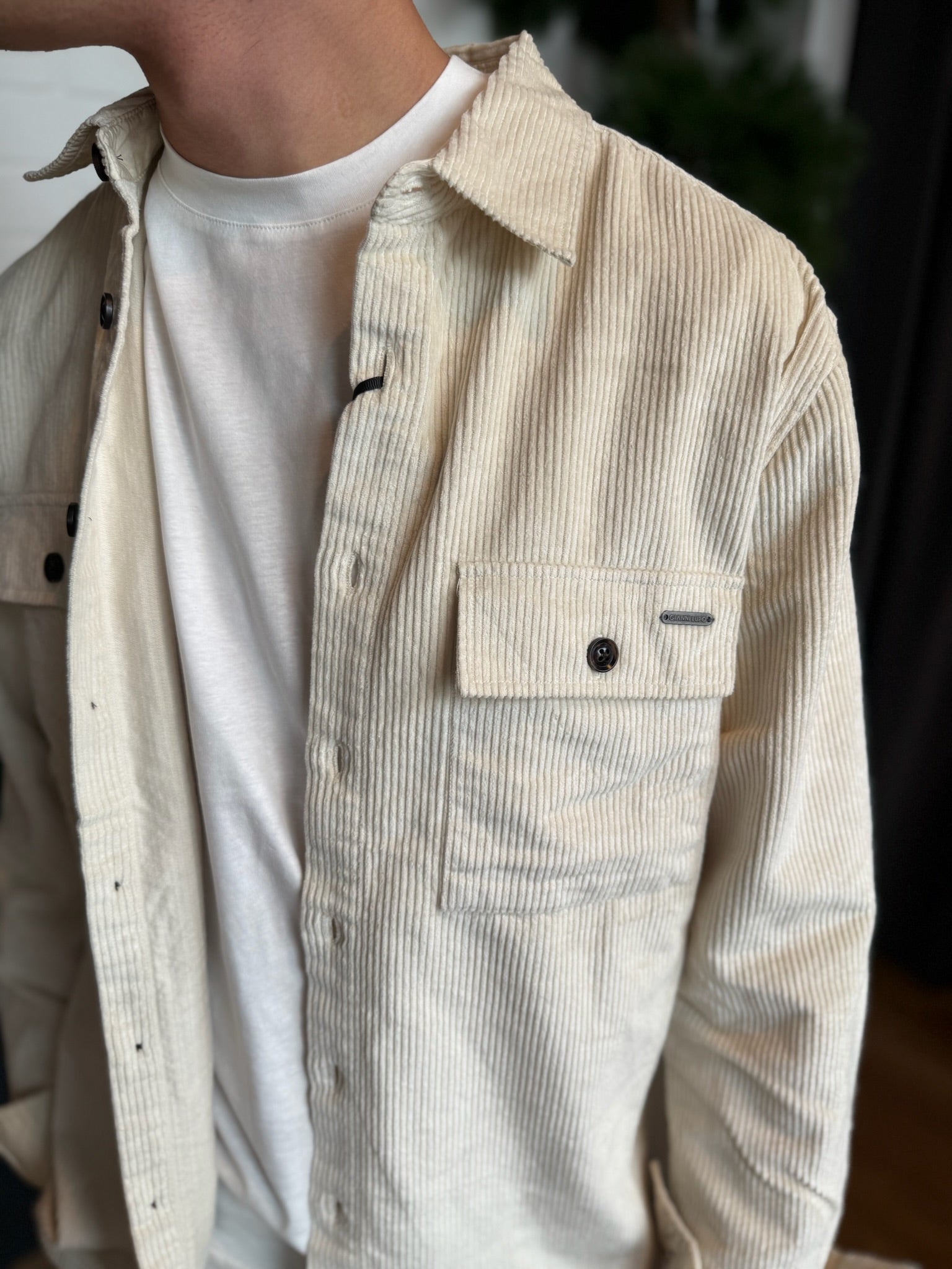 overshirt in velluto crema gianni lupo, dettagli a costine , vestibilità morbida