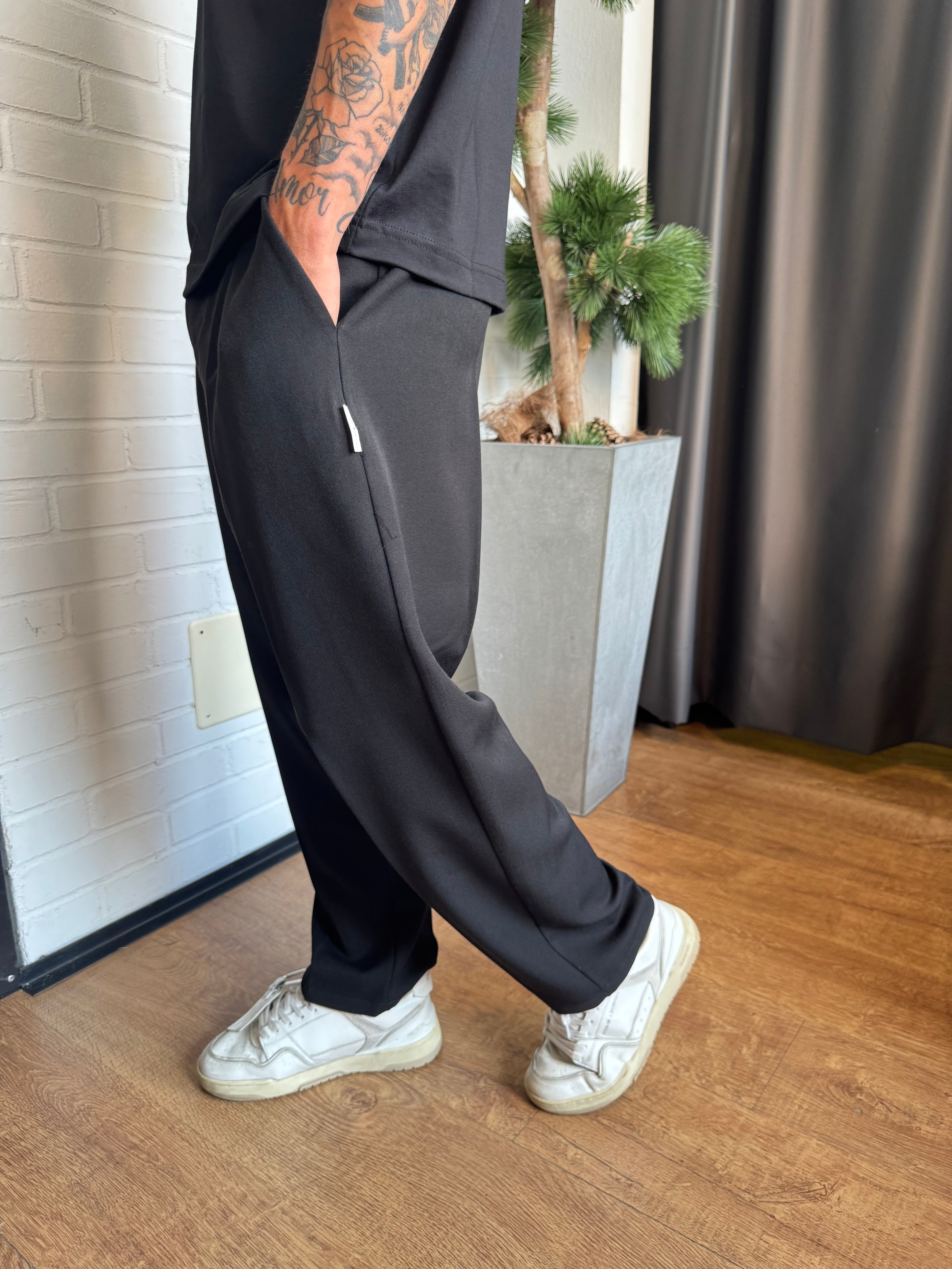 pantalone a palazzo nero new job, senza tasche posteriori, elasticizzato