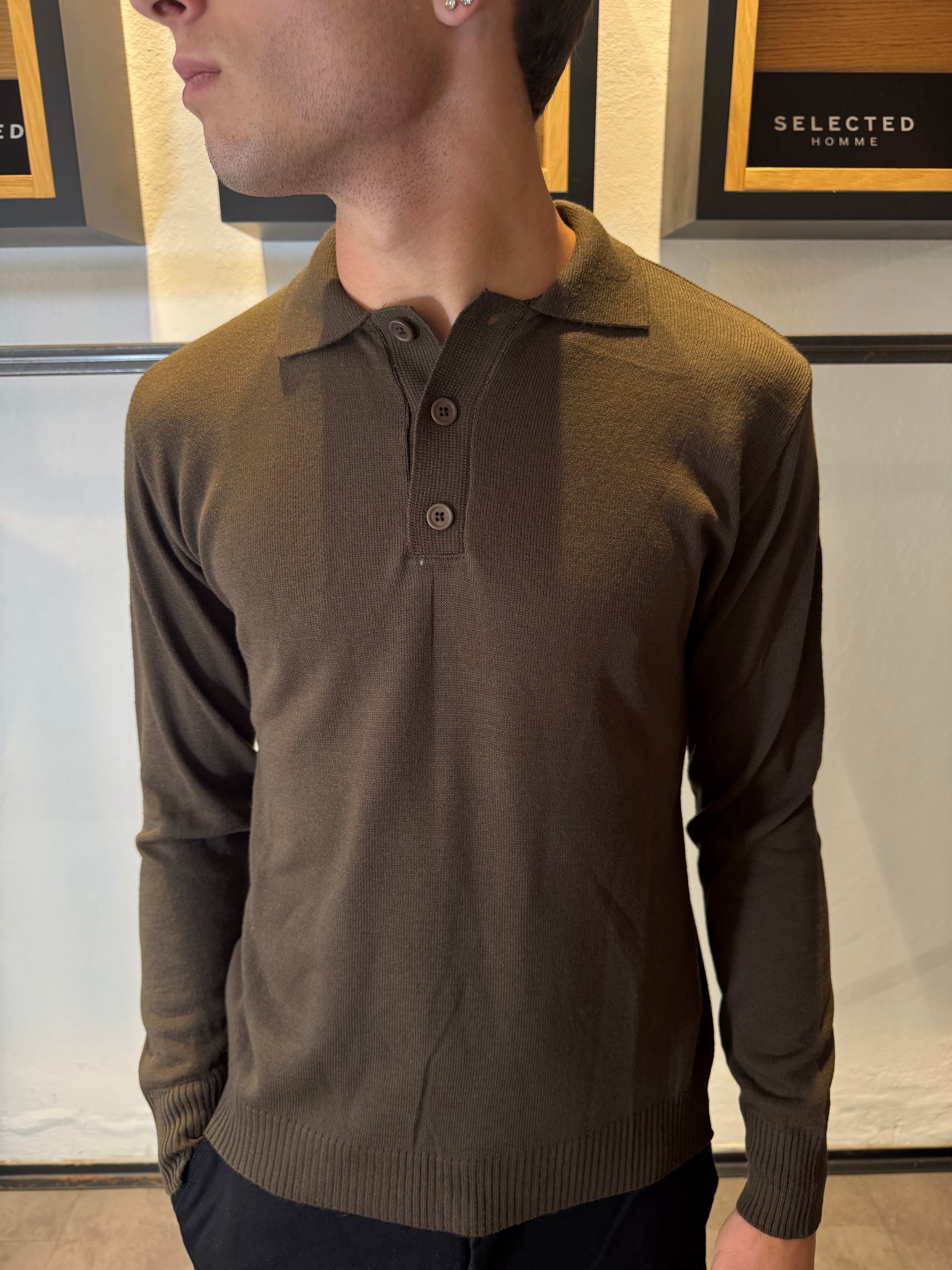 POLO A MANICA LUNGA LANA TINTA UNITA