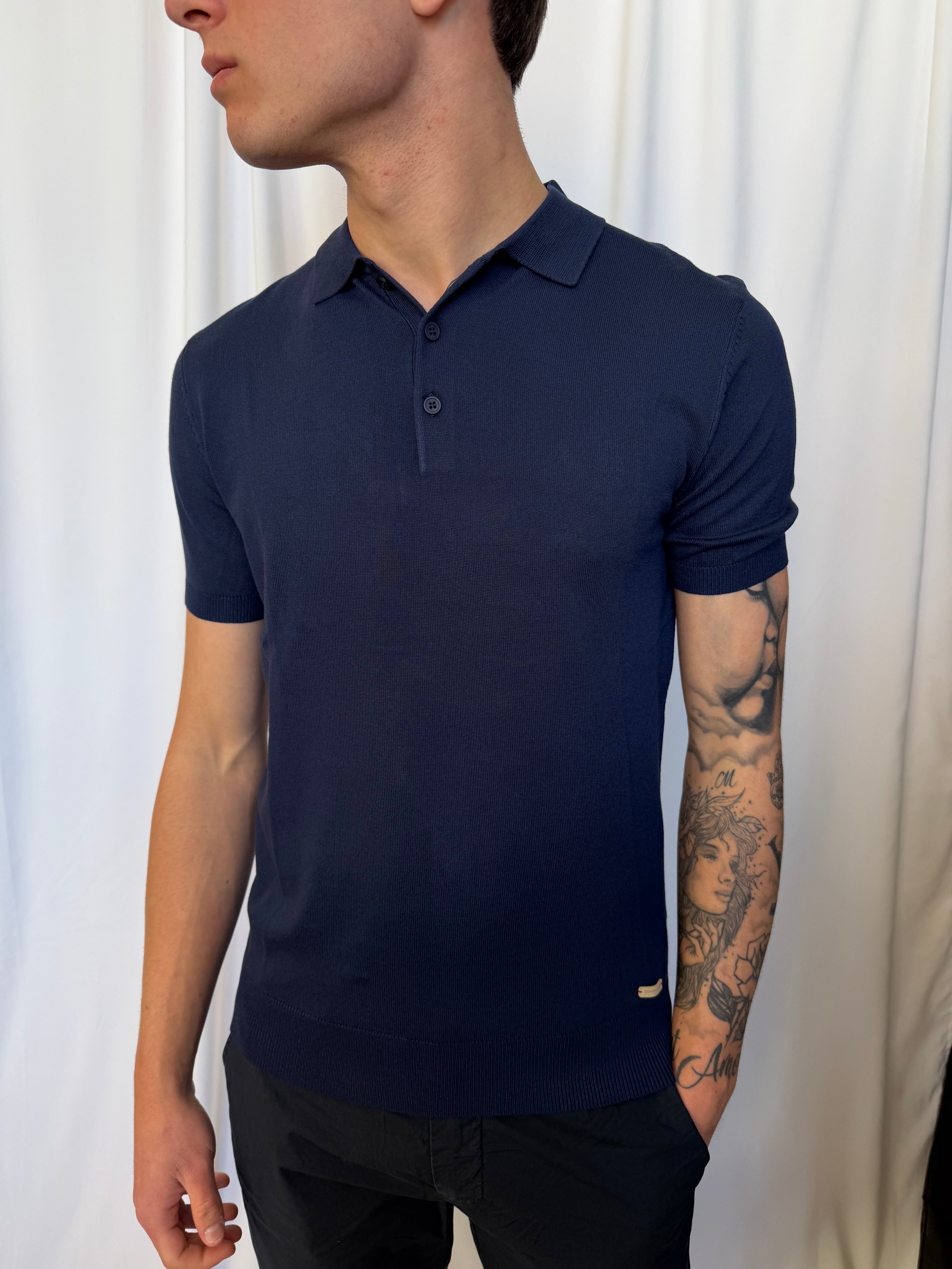 polo in viscosa gianni lupo, triplo bottone, elastico sulla manica, vestibilità slim